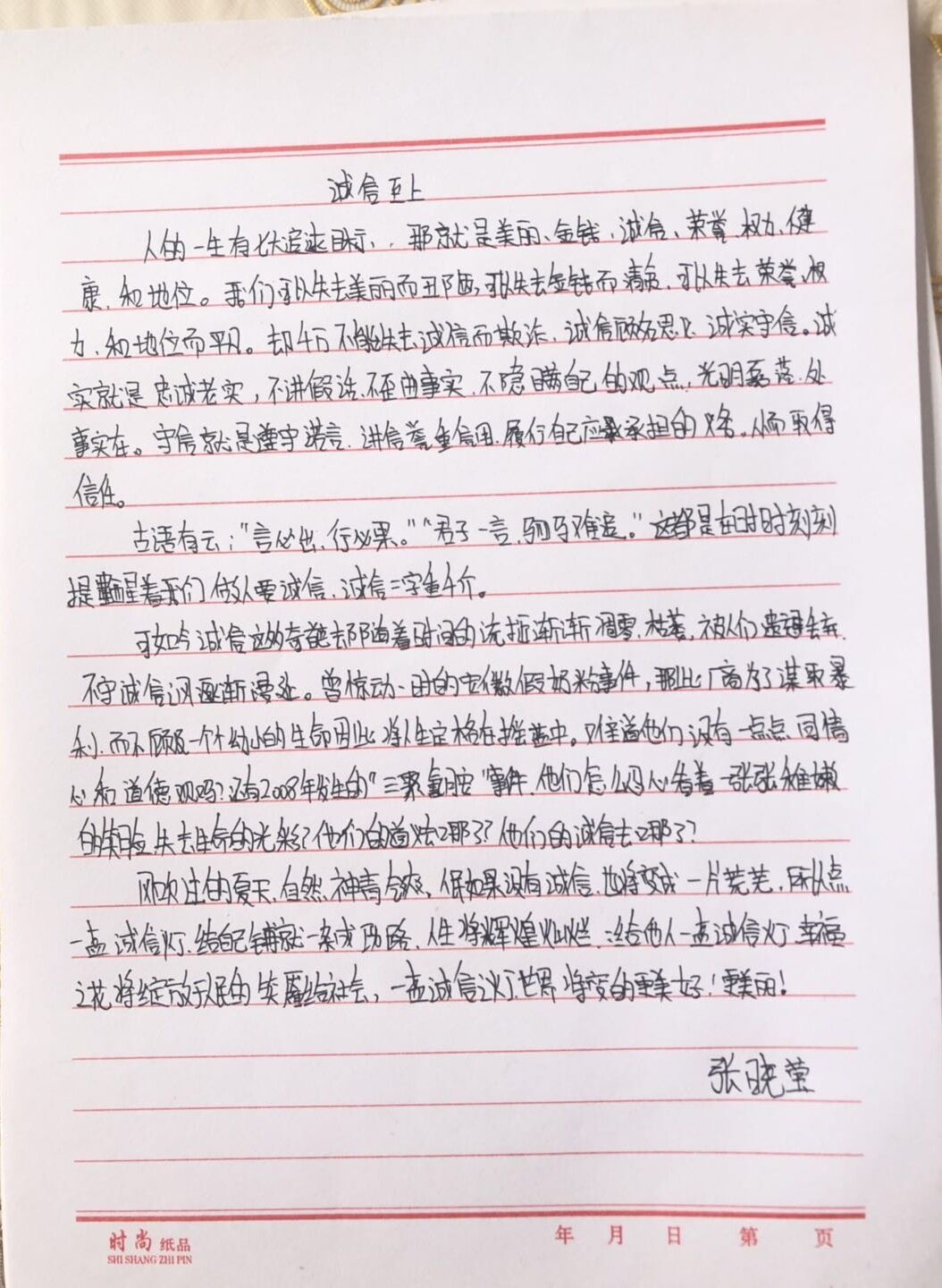 诚信教育是为了培育诚信意识诚信行为所采取的教育活动,教育部在《进一步加强中学诚信教育的通知》中指出,在一些领域和地方不守承诺,欺骗欺诈等失信现象屡禁不止。这些社会不良现象也侵蚀着纯净的校园,给中学生健康成长带来了不利的影响。以诚信教育为突破口,加强中学生思想道德建设不失为一条行之有效的途径。遵循学生认知发展的规律,学生处处长张康带领班主任科学扎实有效地对中学生进行诚信教育。培养学生成为追求高尚的公民,因而在全面实施素质教育中,一个重要的指导思想就在于坚持讲诚信和诚信教育。