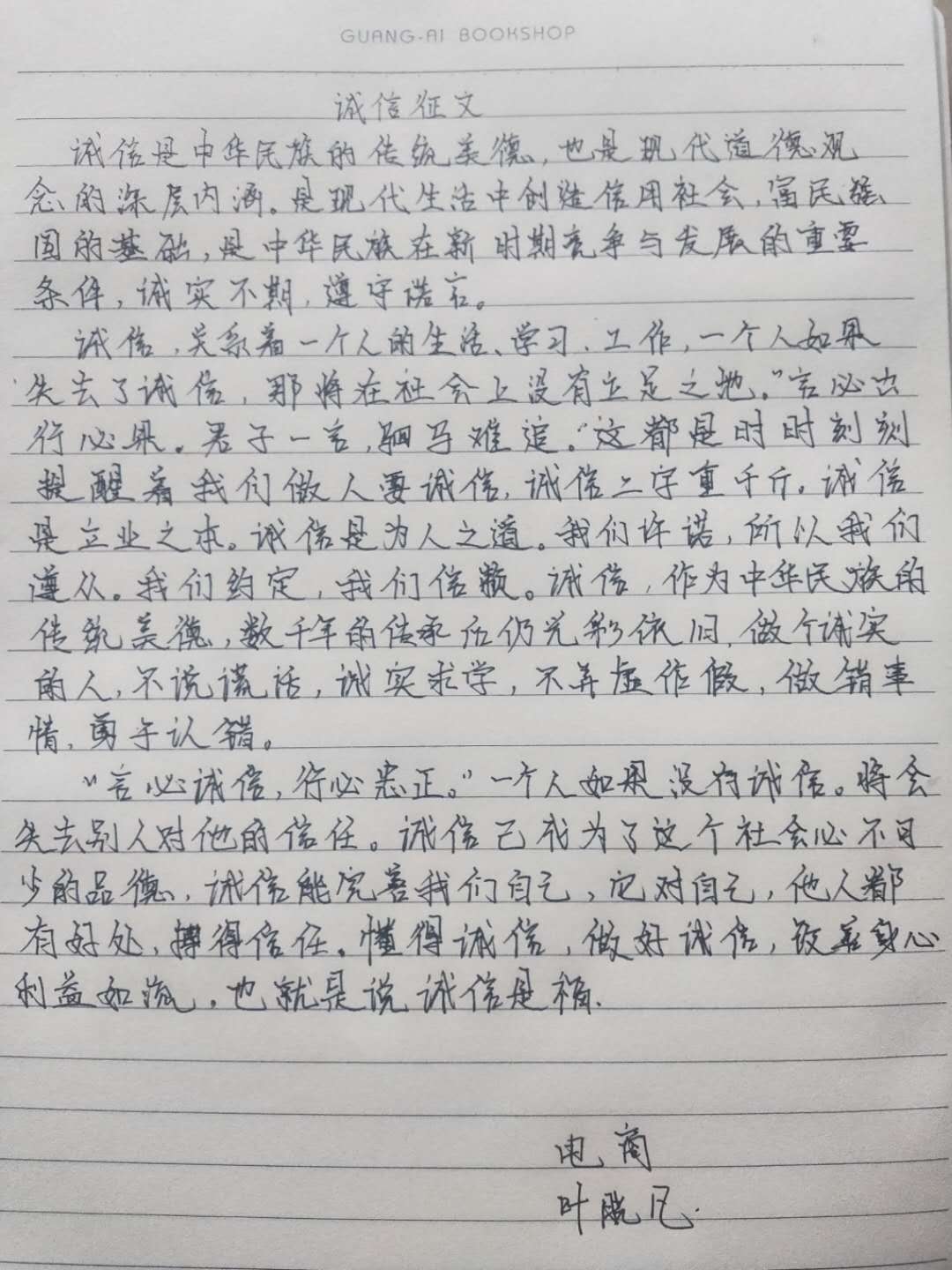 充分认识诚信教育活动是贯彻落实十九大精神和《公民道德建设实施纲要》的重要举措,也是学校全面推进素质教育的素质实践,加强和改进学校德育工作的需要。为营造活动氛围,学校利用网站、电子滚动显示屏、线上开展主题班会等形式向全体教师和学生宣传诚信教育的基本内容、要求和重要意义。学校以诚信为主题开展了一次“学生人人知诚信,人人讲诚信”的征文活动。