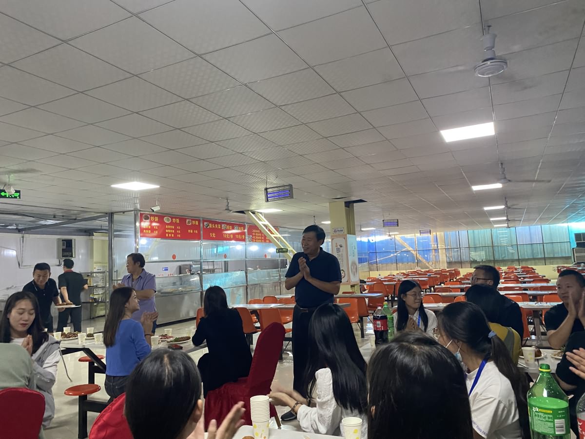 9月21日,中秋佳节欢聚团圆之日,继承传统,弘扬传统,营造团圆和谐,文明的校园分为,石家庄市现代经贸中等专业学校的教职工齐聚食堂进行团建聚餐,共同庆祝中秋佳节。马京斌校长在用餐前,进行餐前讲话。马校长表达了对教职工在节假日仍坚守岗位的慰问,表达了对教职工中秋节日的祝福,也表达了对食堂赞助的感谢。