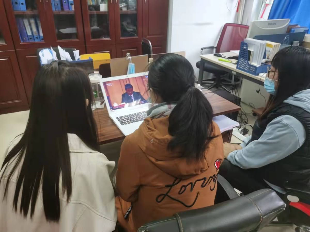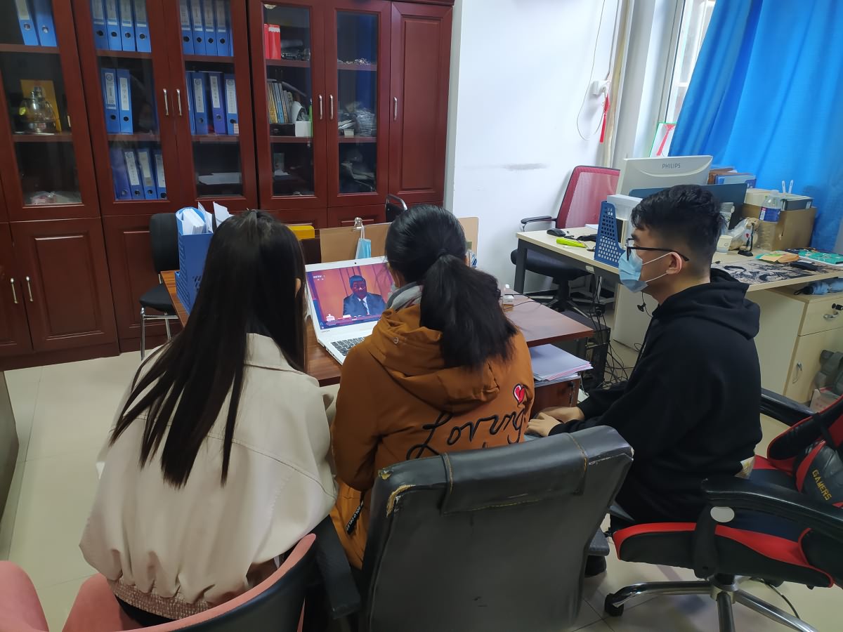 同期上午十点,石家庄市现代经贸中等专业学校组织观看“纪念辛亥革命110周年大会”,在校的教职工积极主动的进行大会观看。