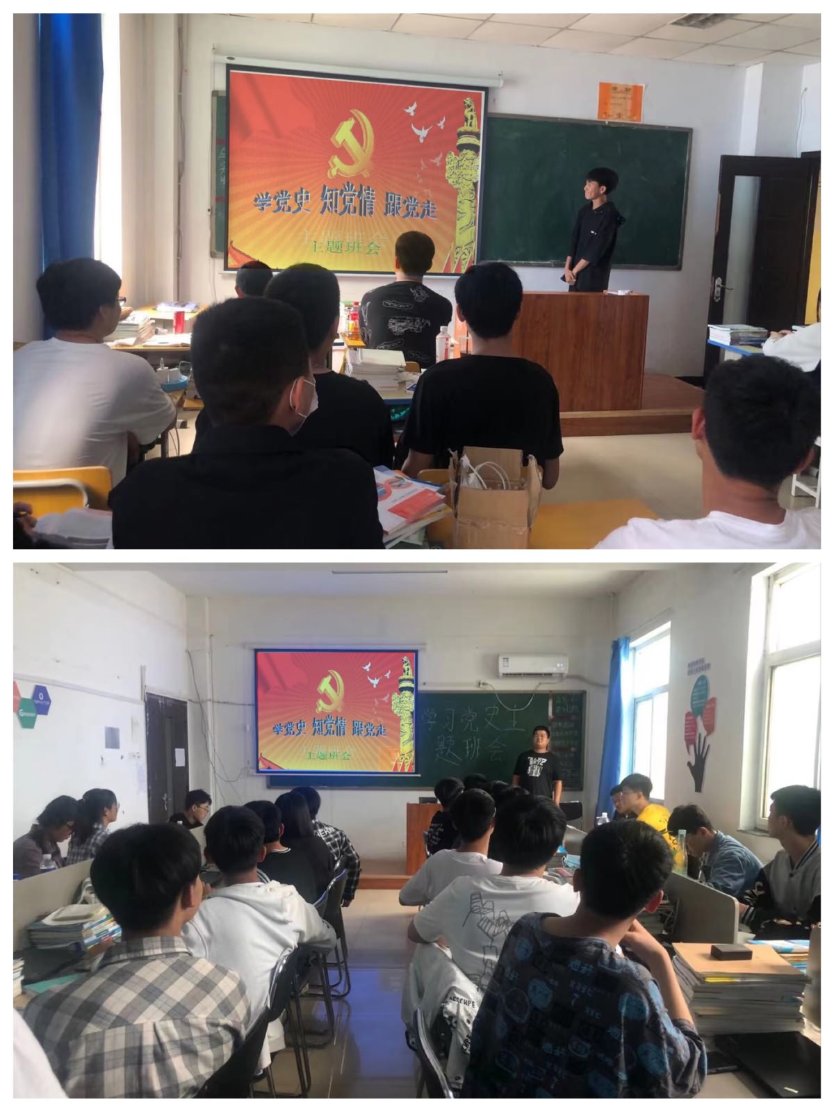 各位老师带领学生们学唱红色歌曲、朗诵红色诗歌、交流红色故事…… 同学们用丰富多彩的形式赞颂党的丰功伟绩,表达对党和祖国的美好祝愿,做好时刻准备着报效祖国的决心。
